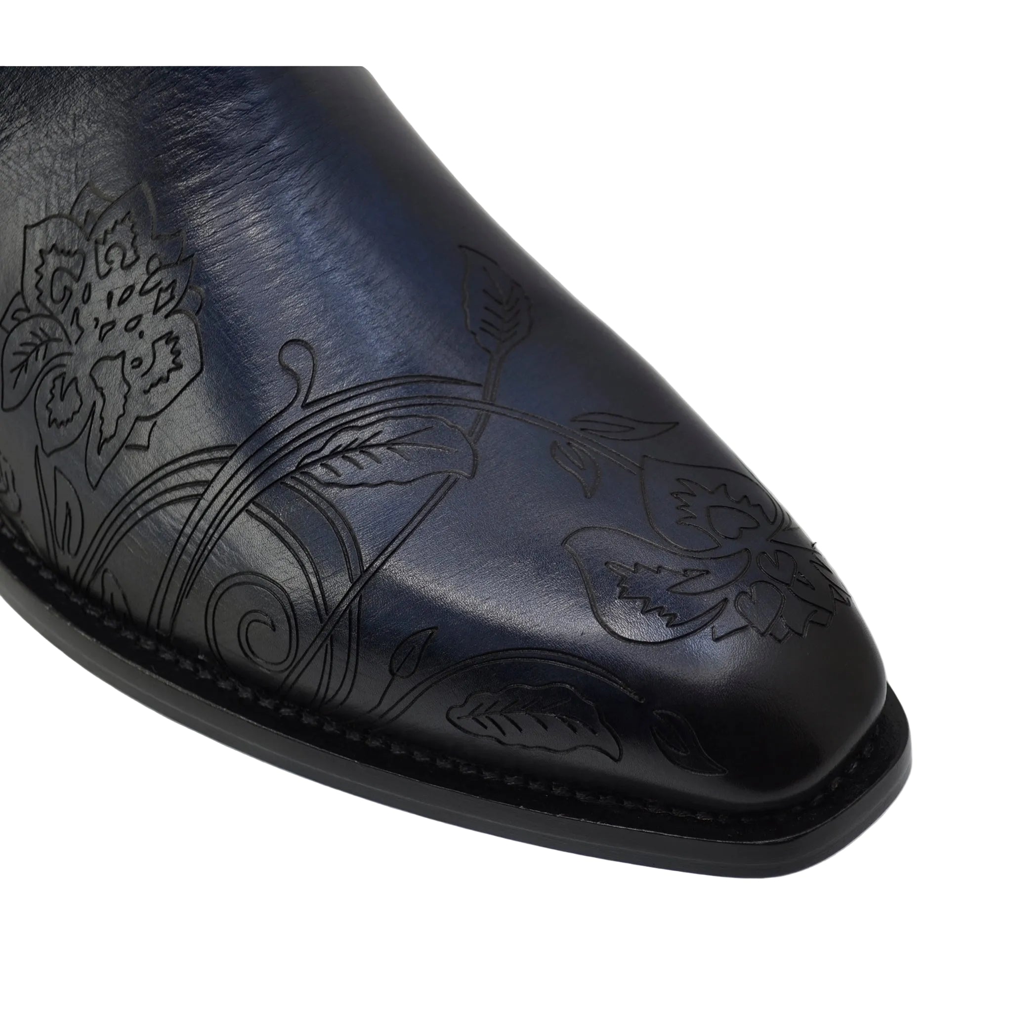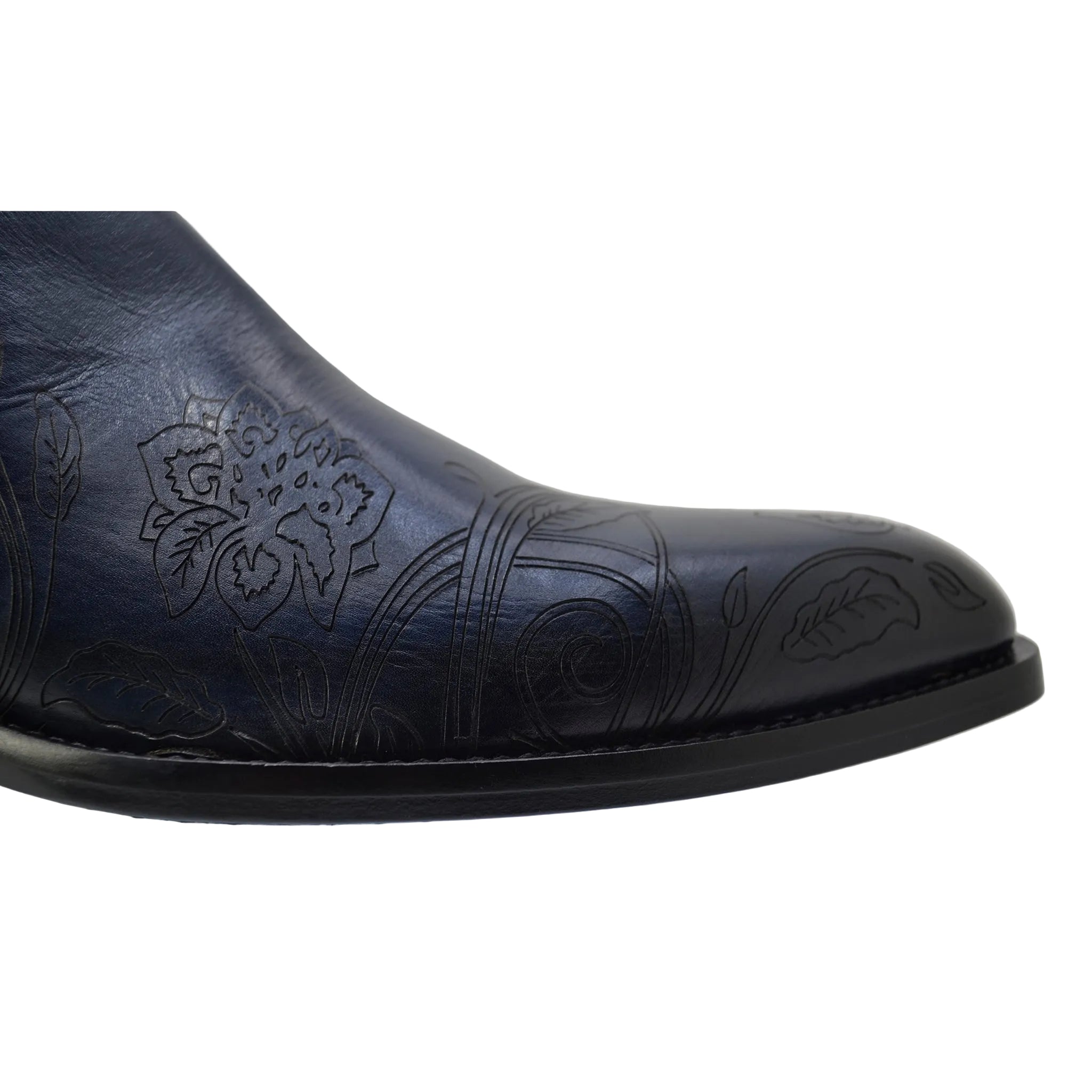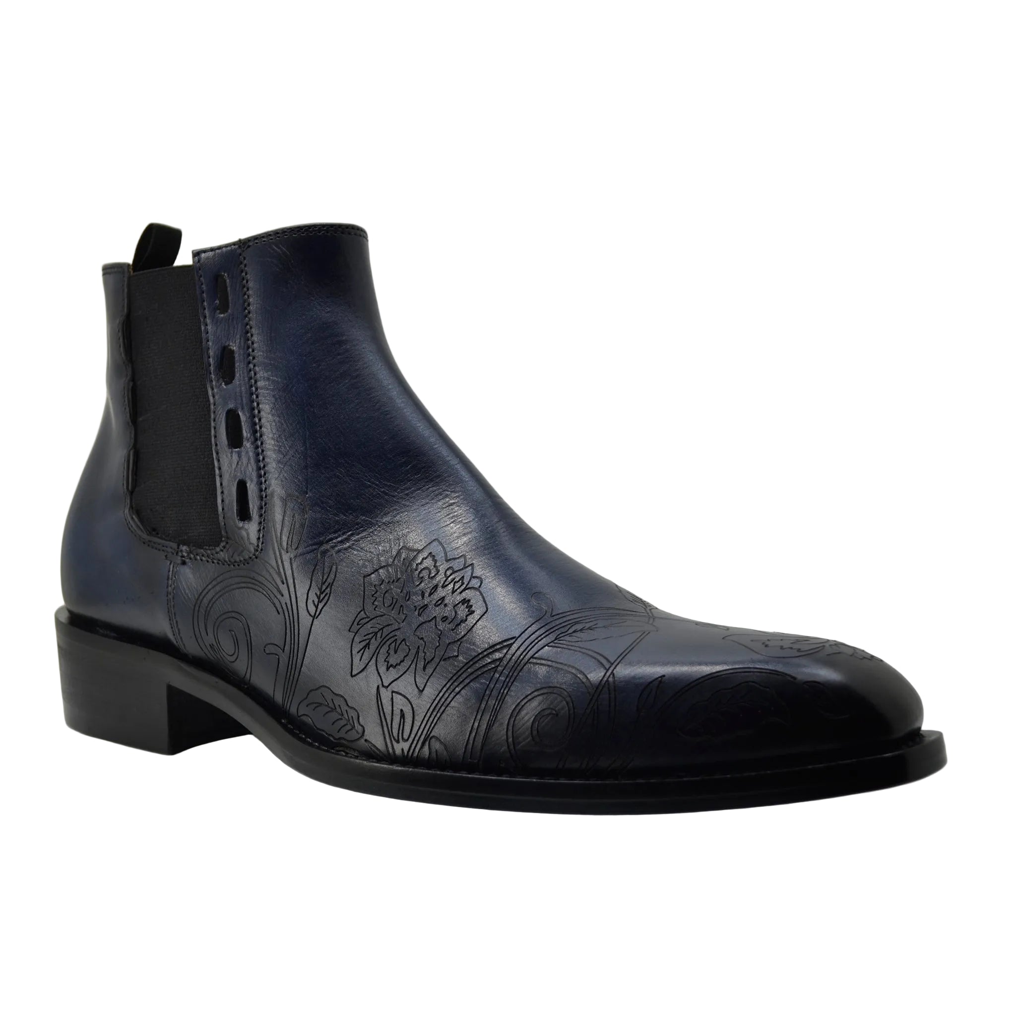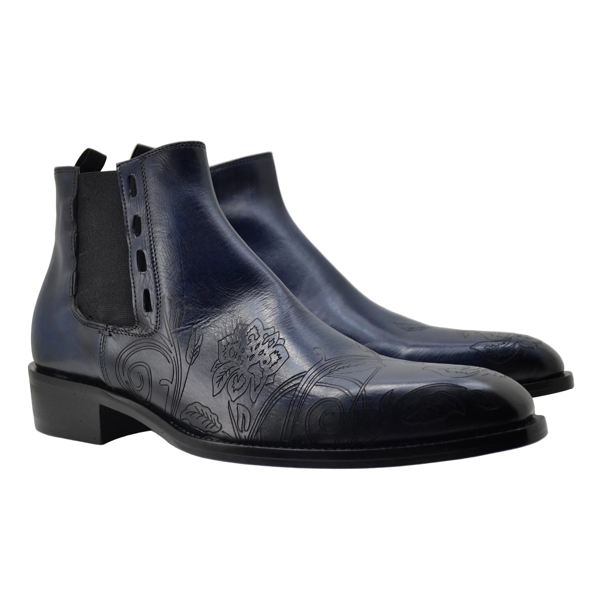 The Jo Ghost Italy Model 4757M Chelsea Ankle Boots combine sharp tailoring with artisanal Italian craftsmanship. Crafted from premium blue leather, these formal ankle boots feature a subtle black-hinted edge finish that adds depth and character to the design.