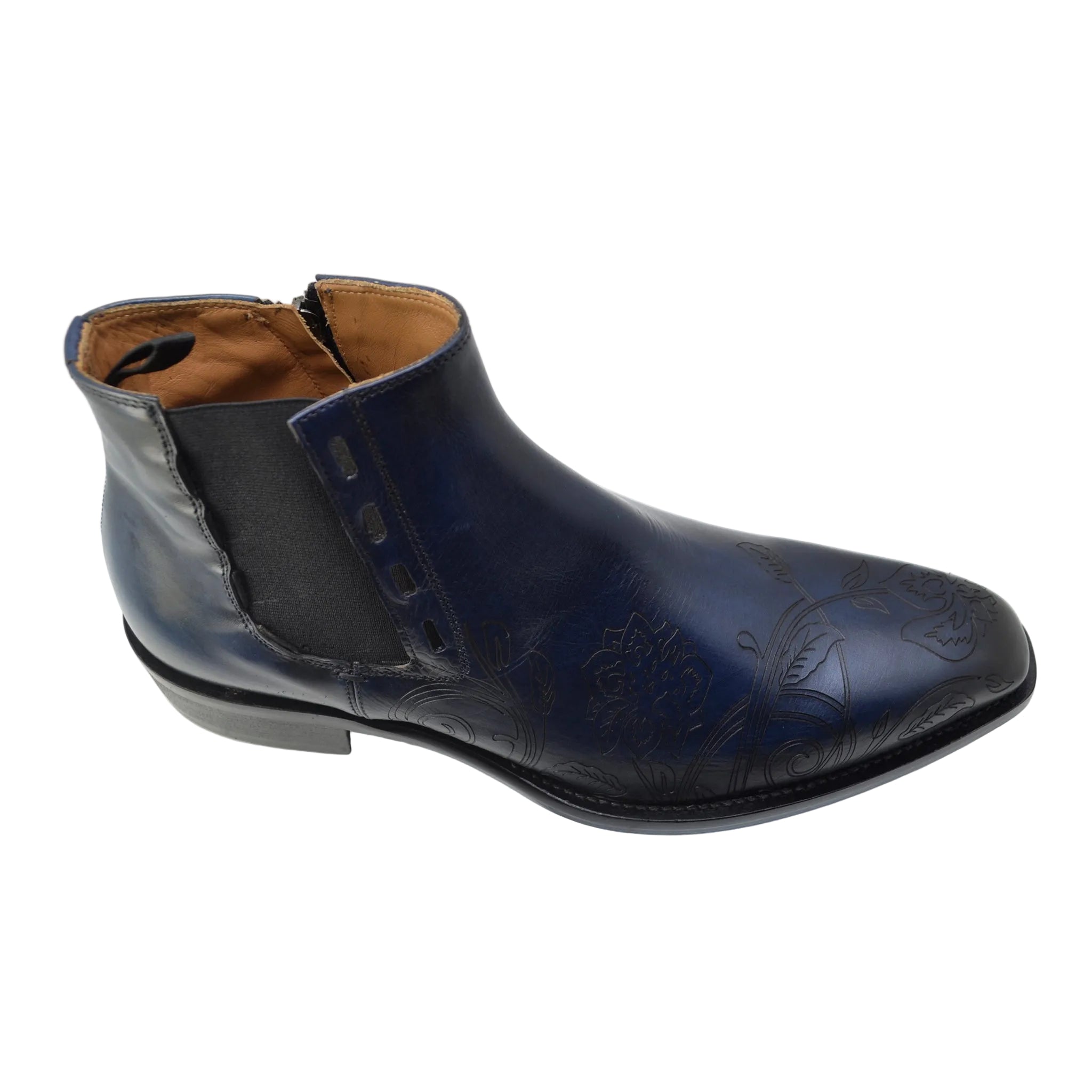 Italian Men's Boots Jo Ghost 4757M Blue Leather Ankle Chelsea Boots