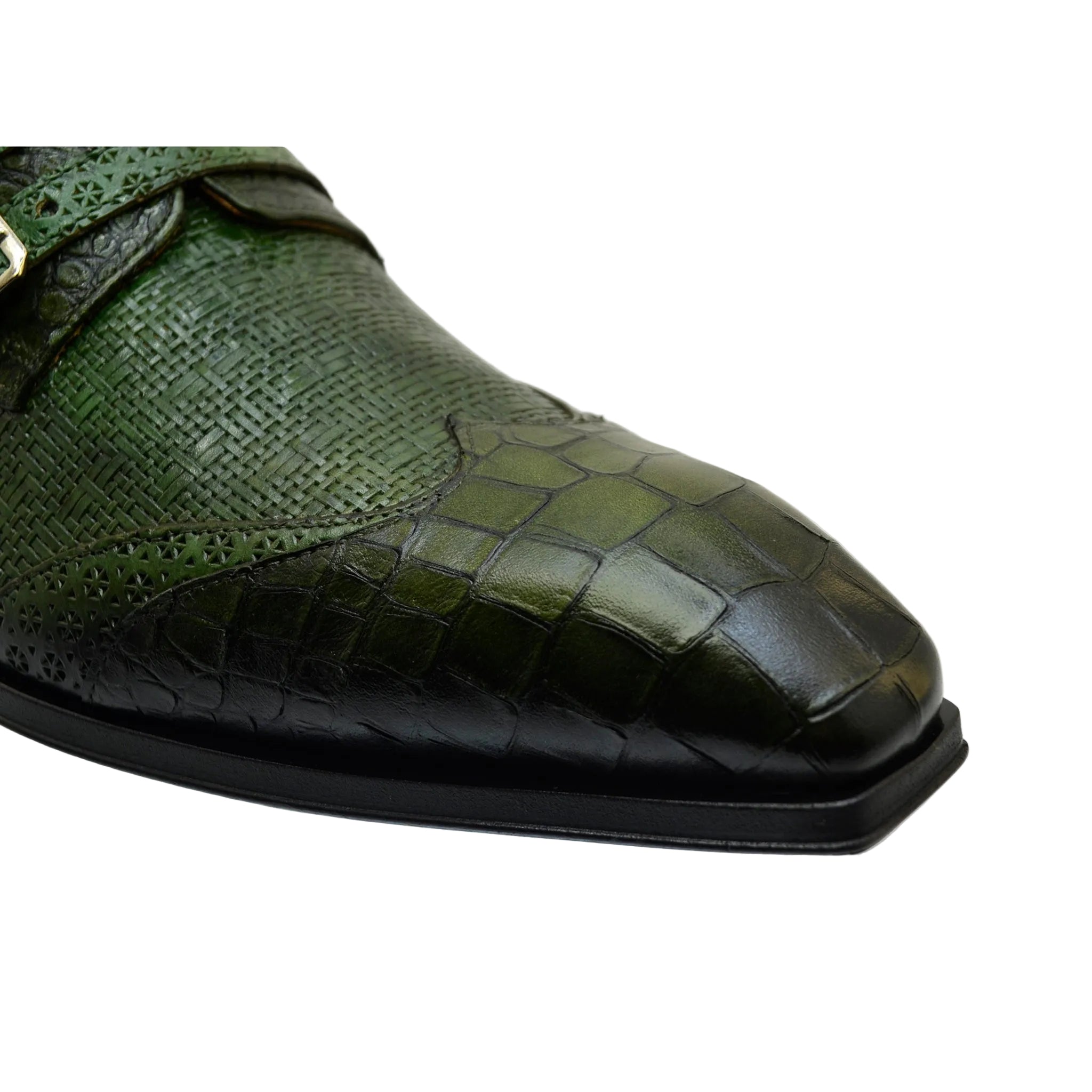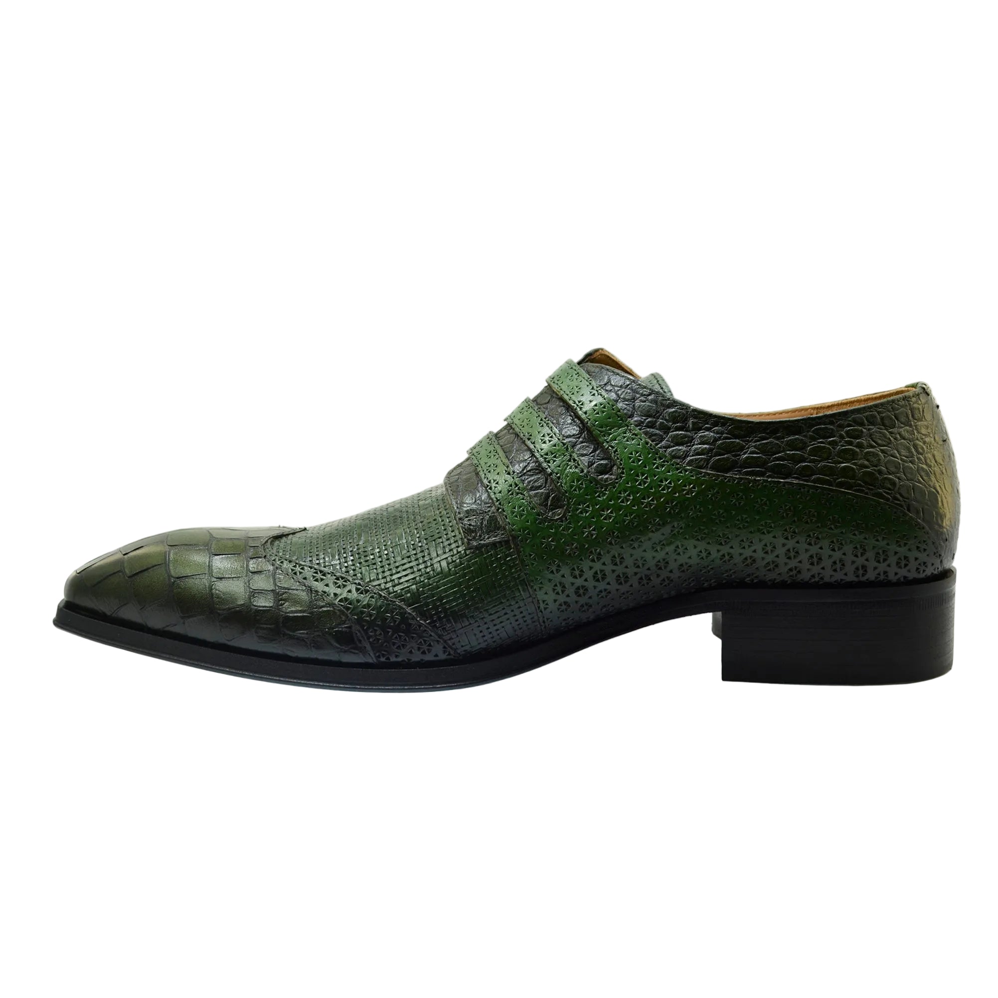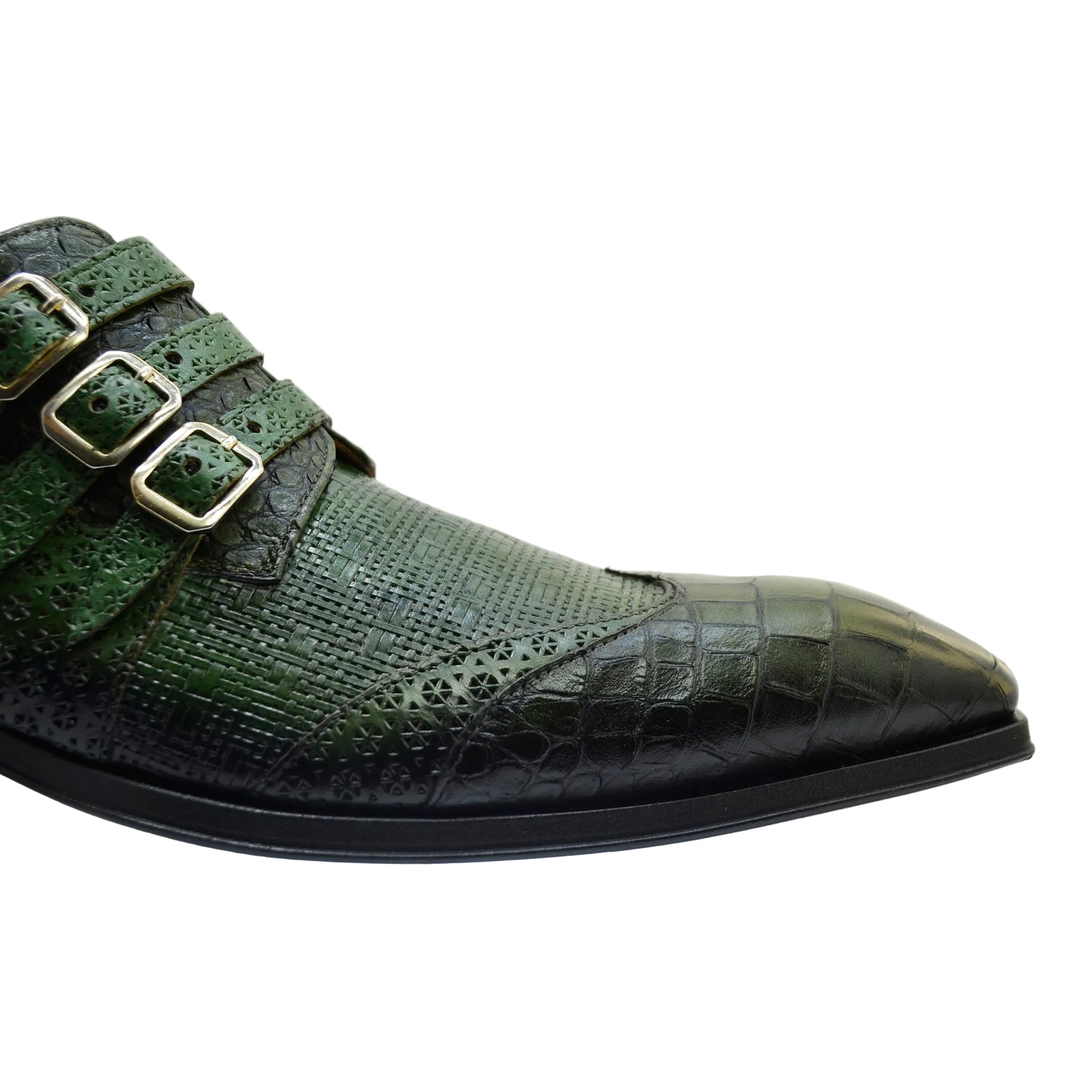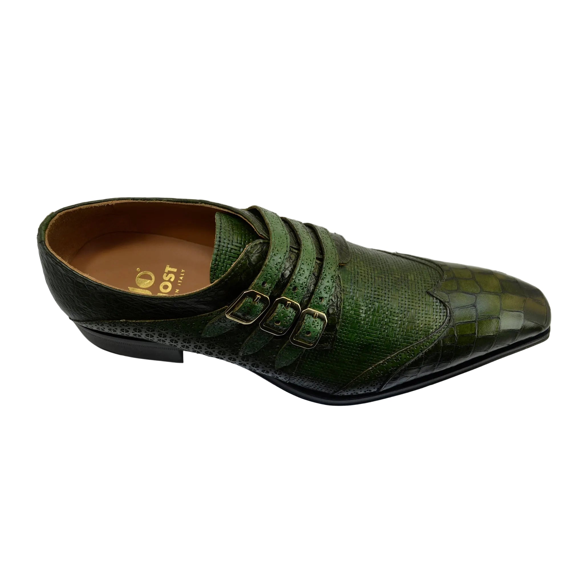 Men's Italian Shoes Jo Ghost 5393 Green Pattern Leather Dress Buckle Shoes