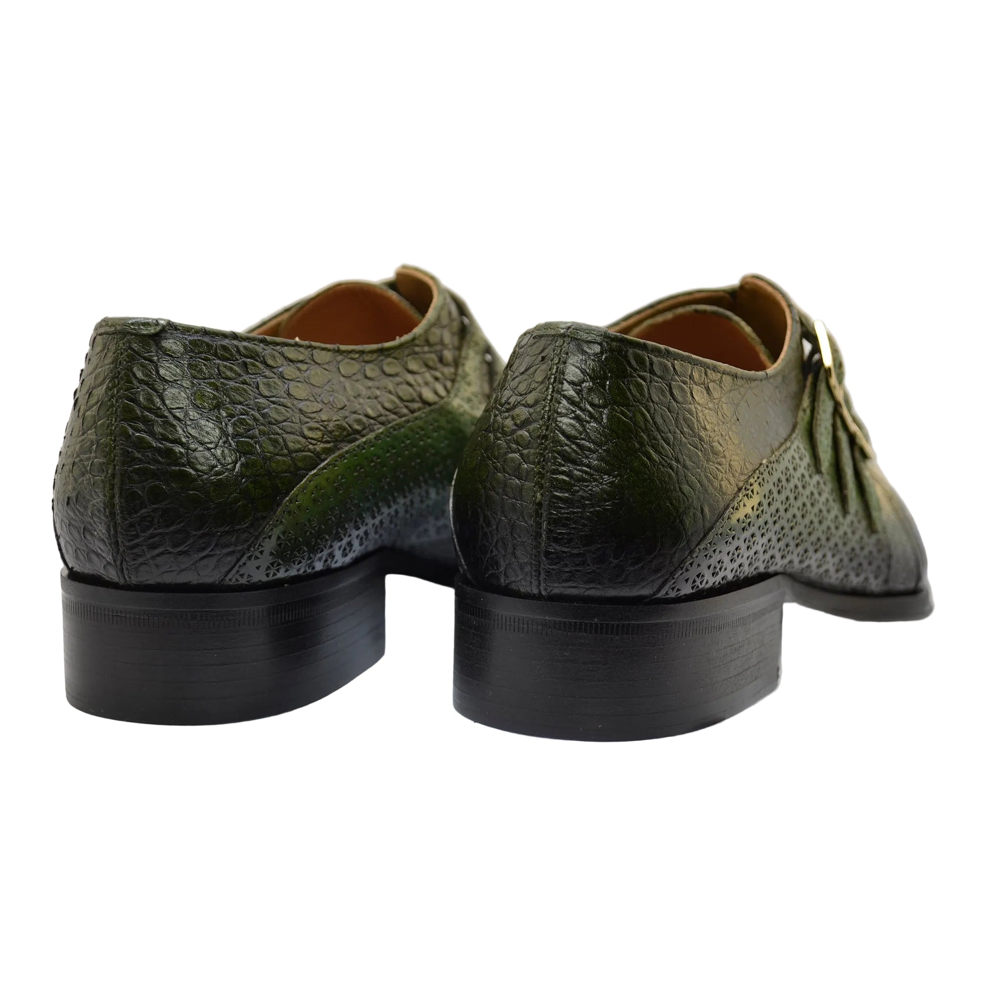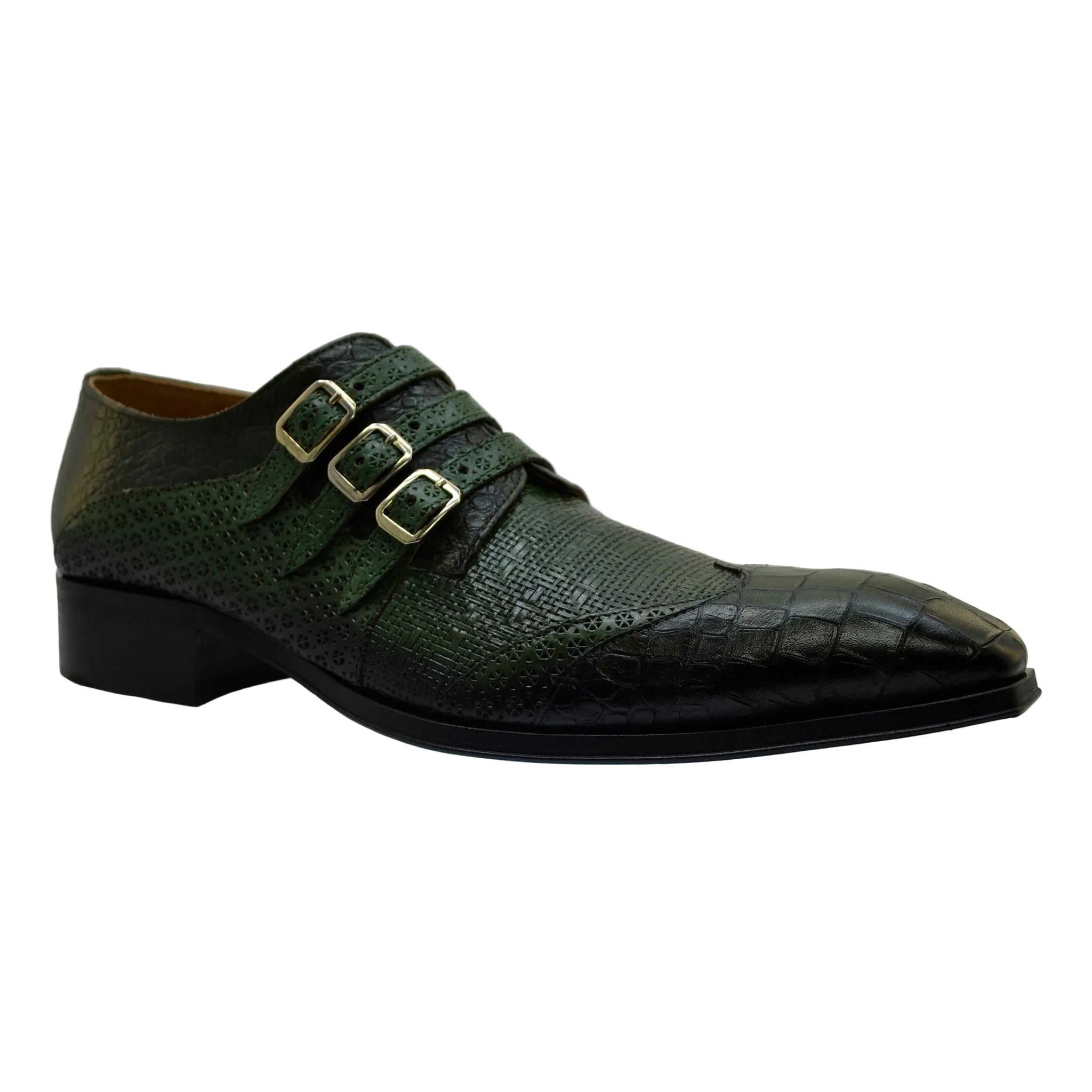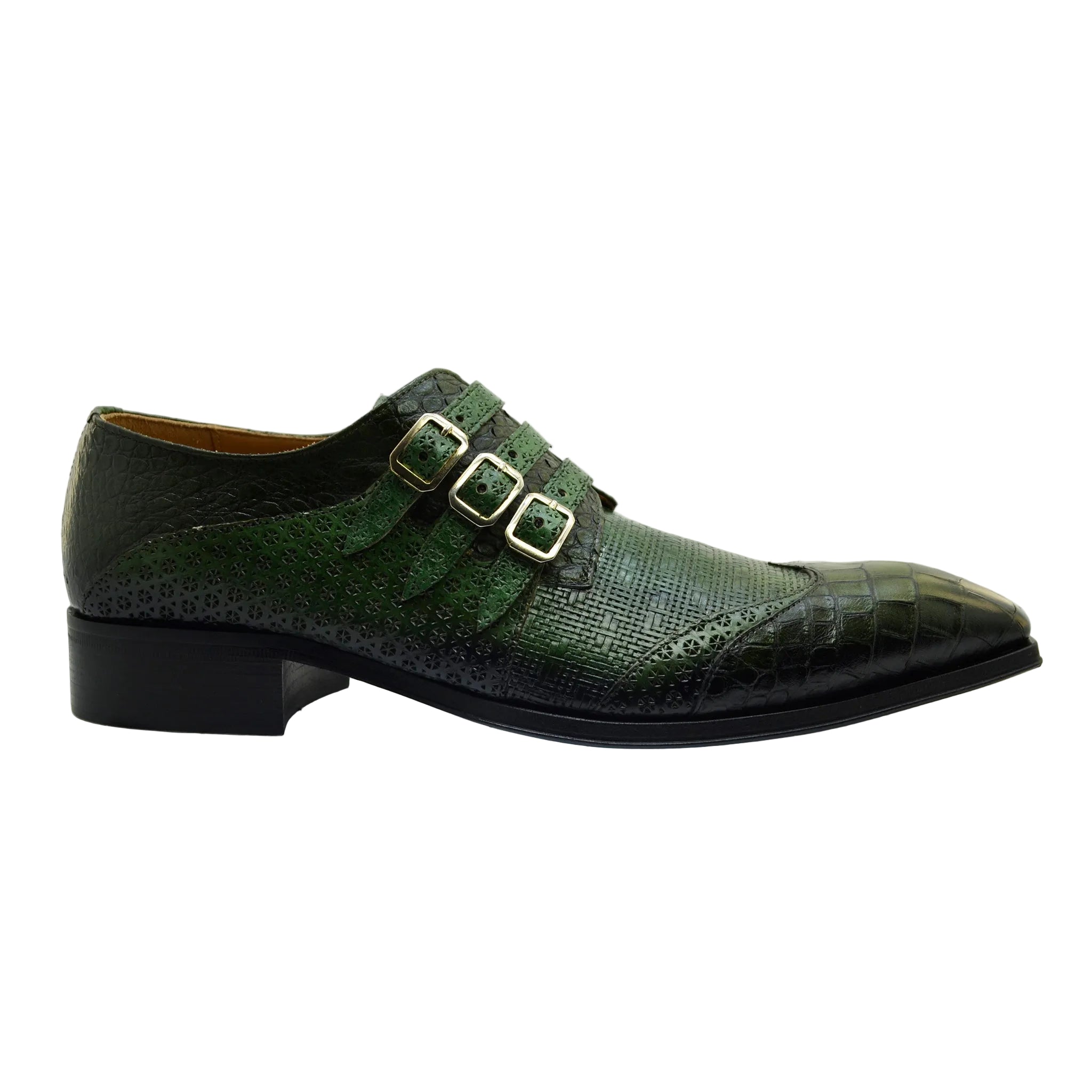 Men's Italian Shoes Jo Ghost 5393 Green Pattern Leather Dress Buckle Shoes