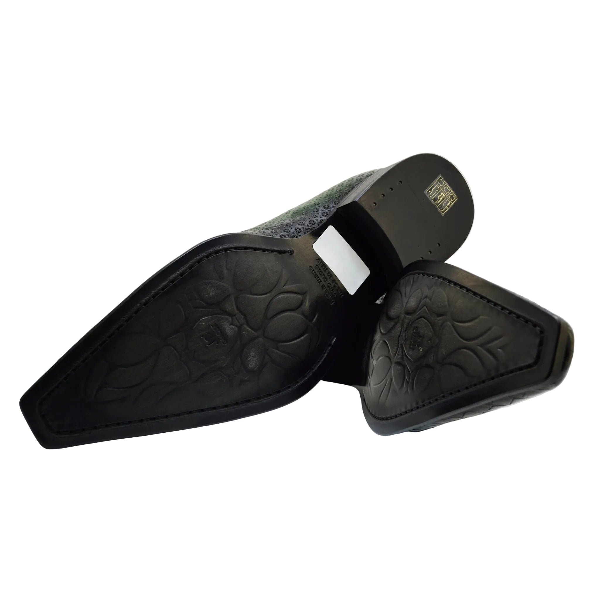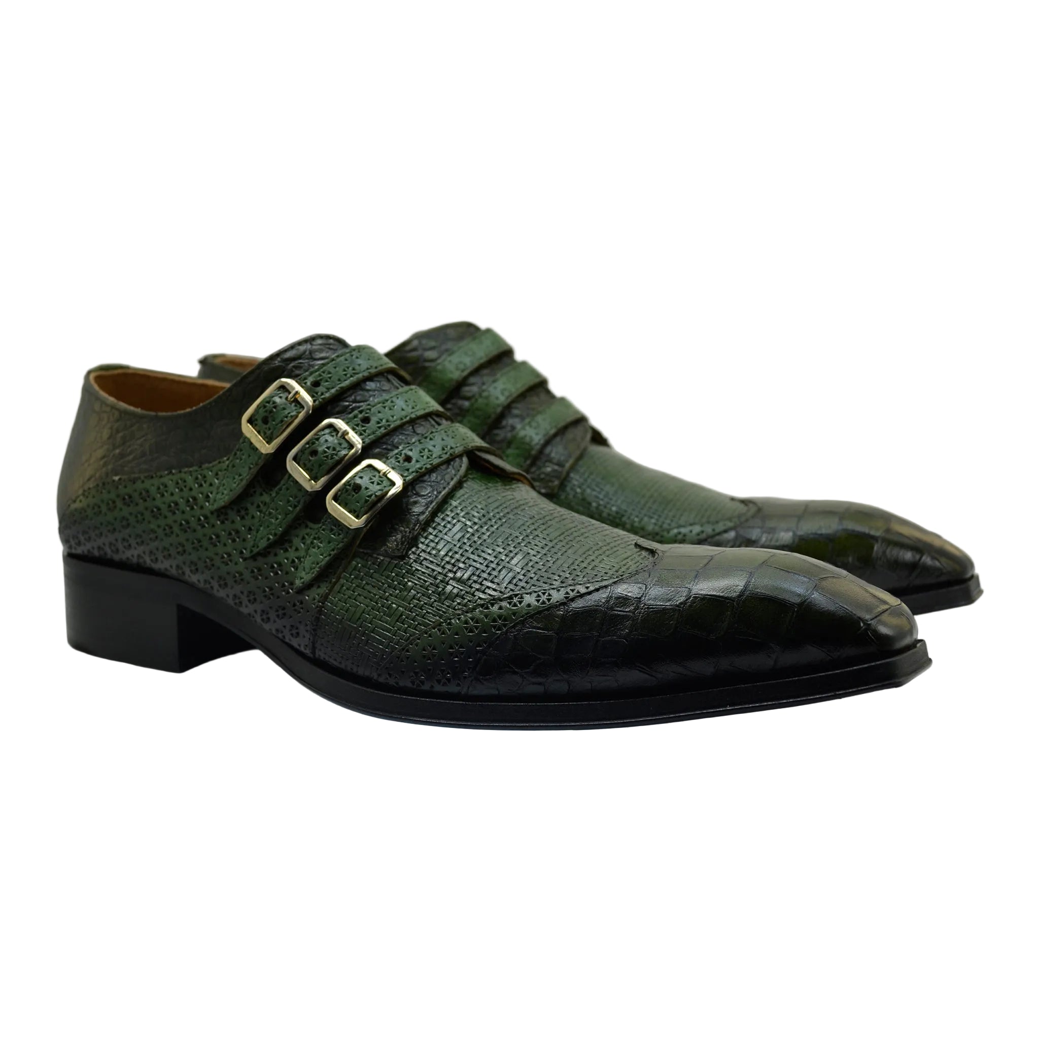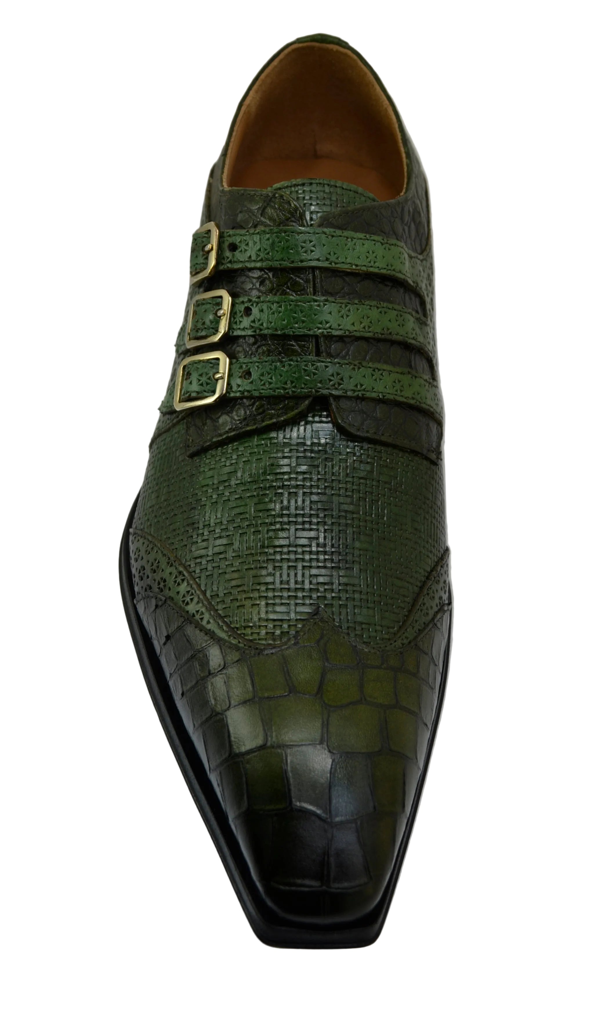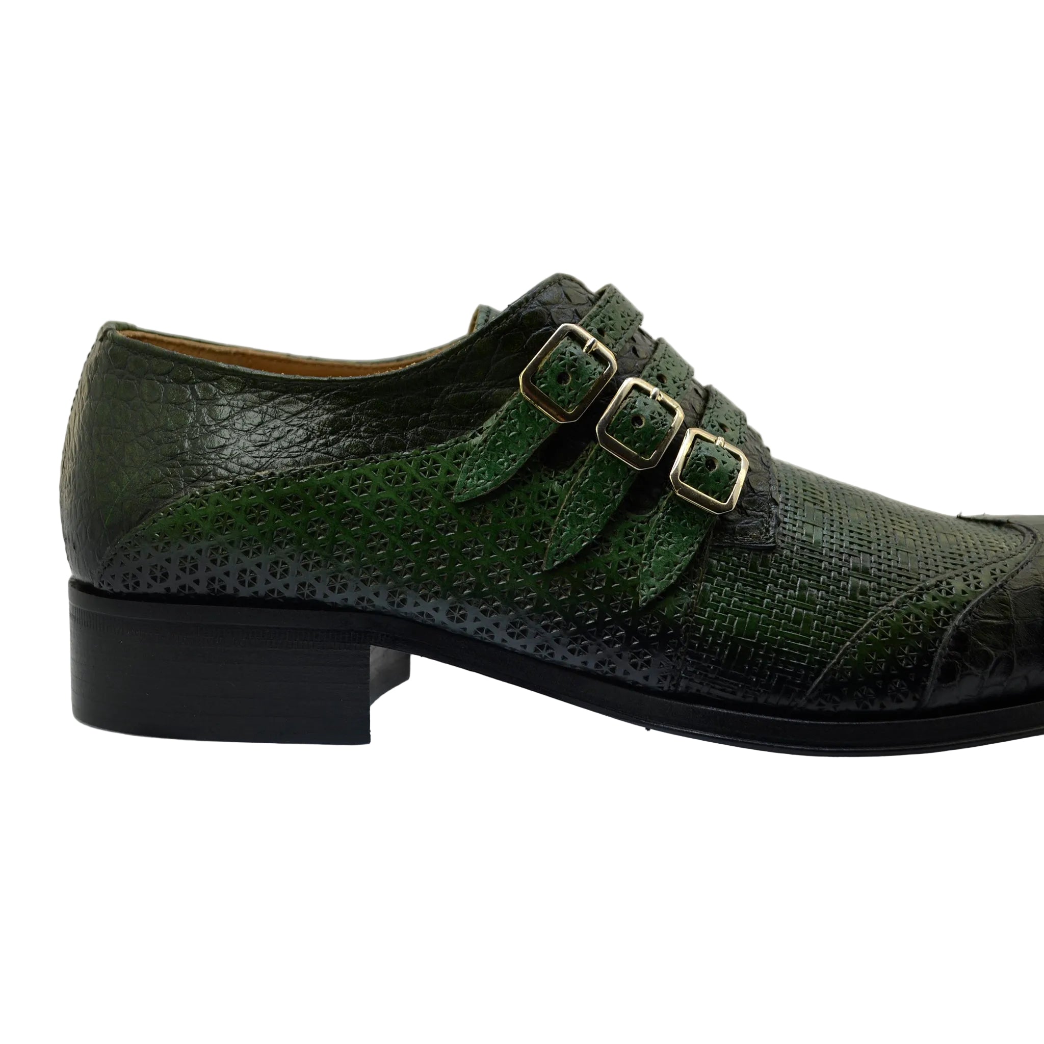 Men's Italian Shoes Jo Ghost 5393 Green Pattern Leather Dress Buckle Shoes