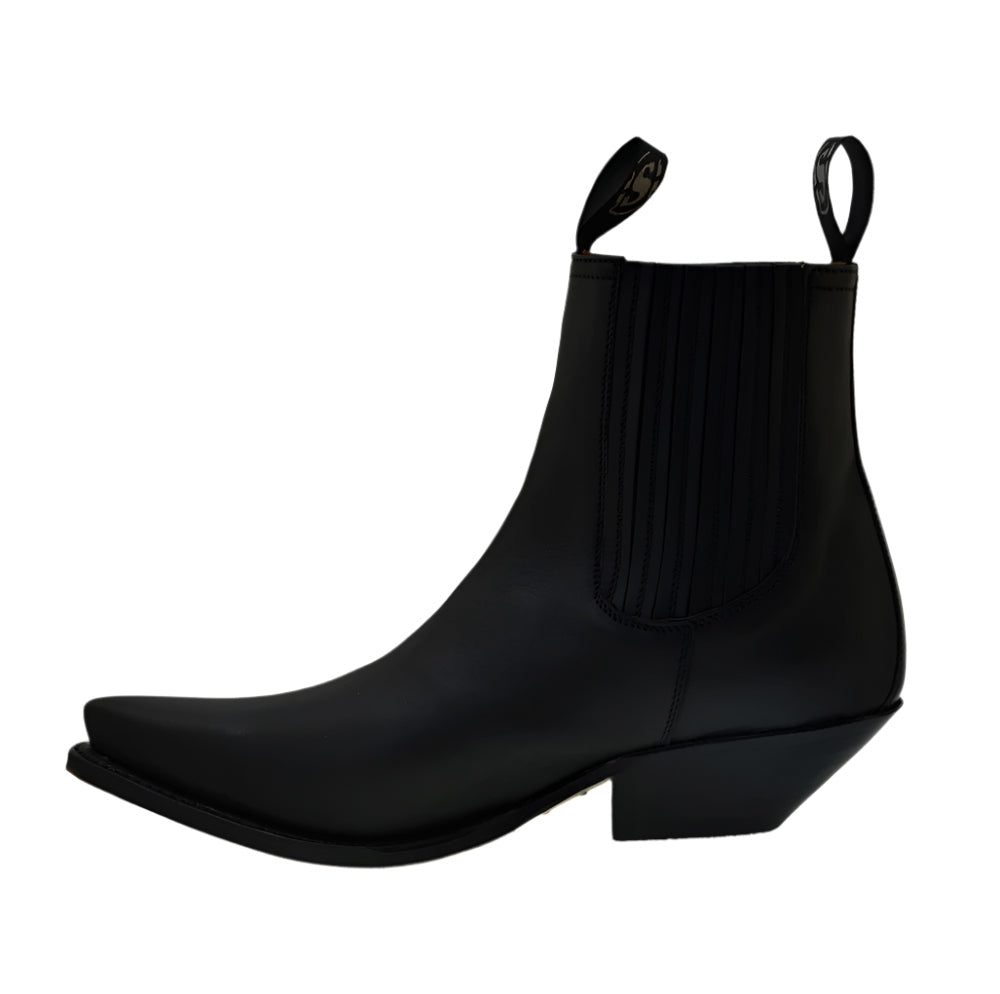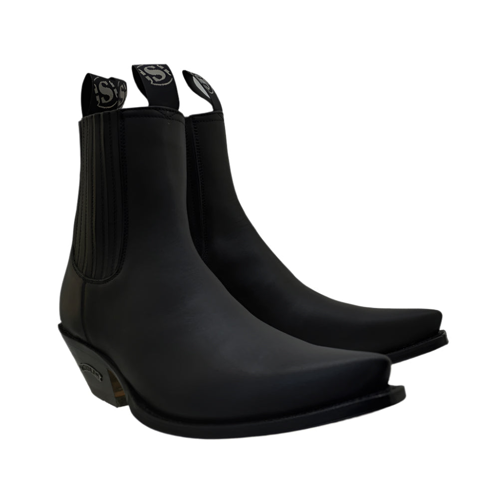 Men's Cowboy Boots Sendra 1692 Black Leather Ibiza Heel Pull up Ankle Boots