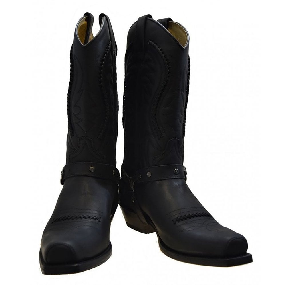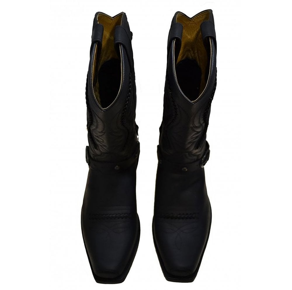 Men's Biker Boots Sendra 3434 Harness Black Leather Cuban Heel Mid-calf Boots