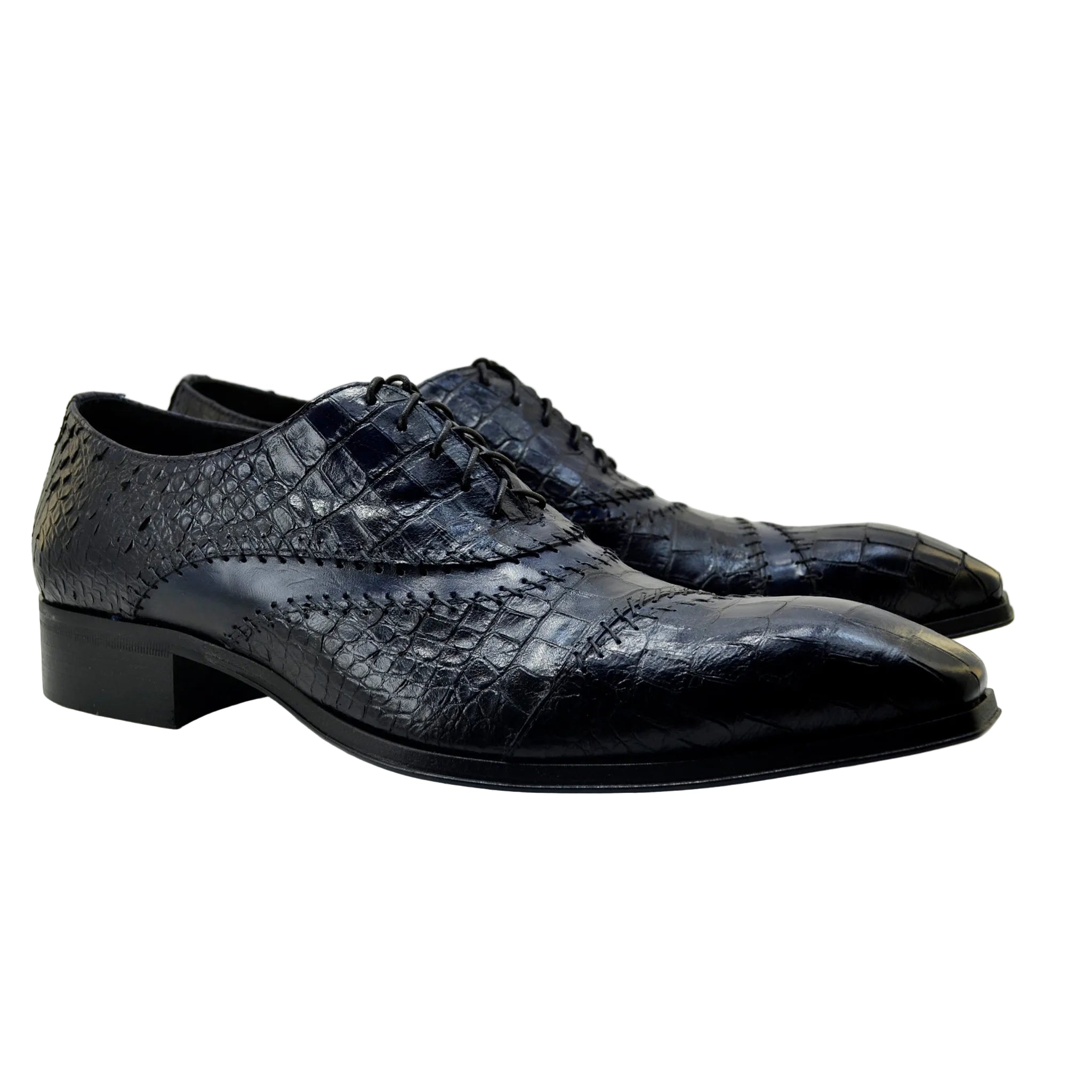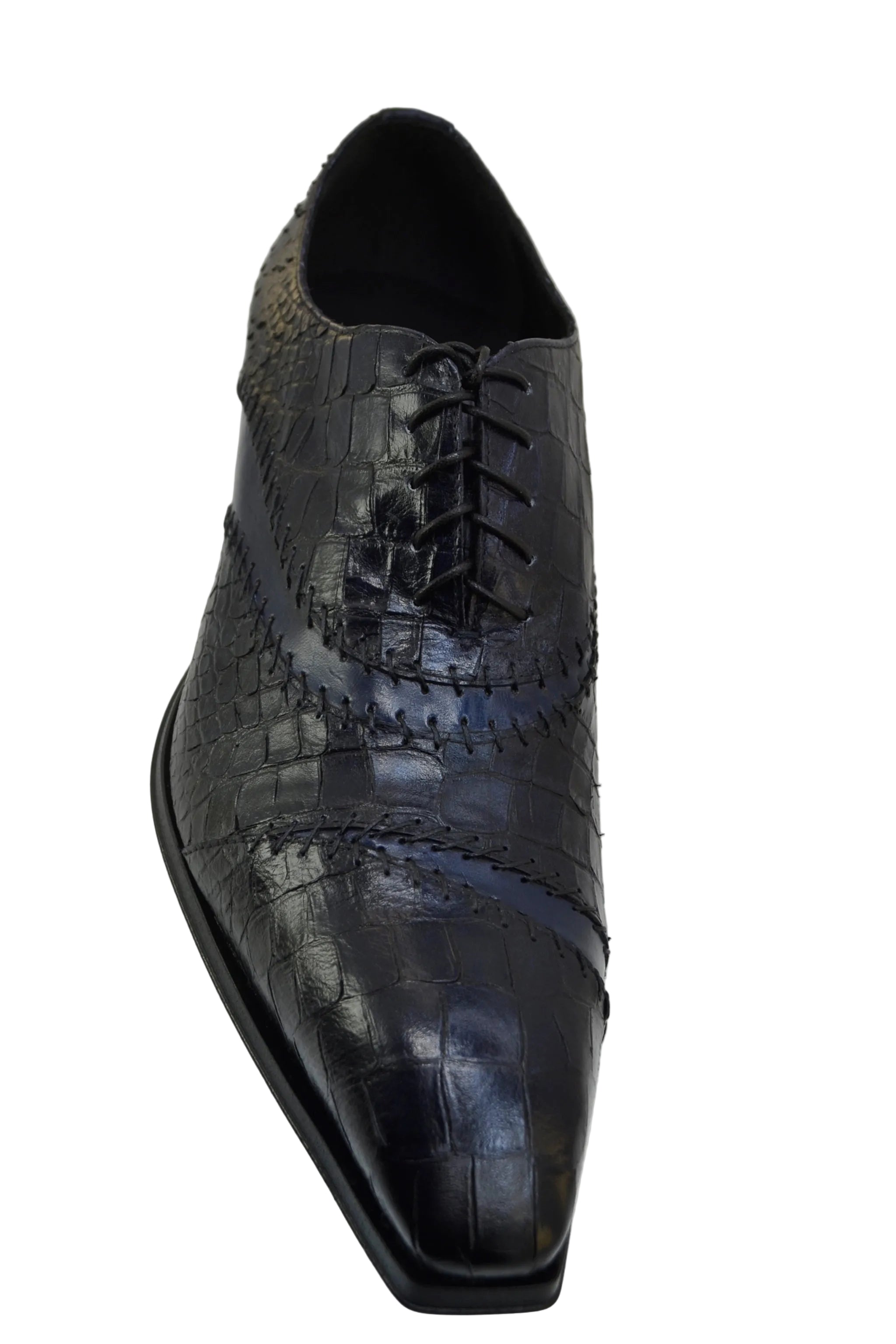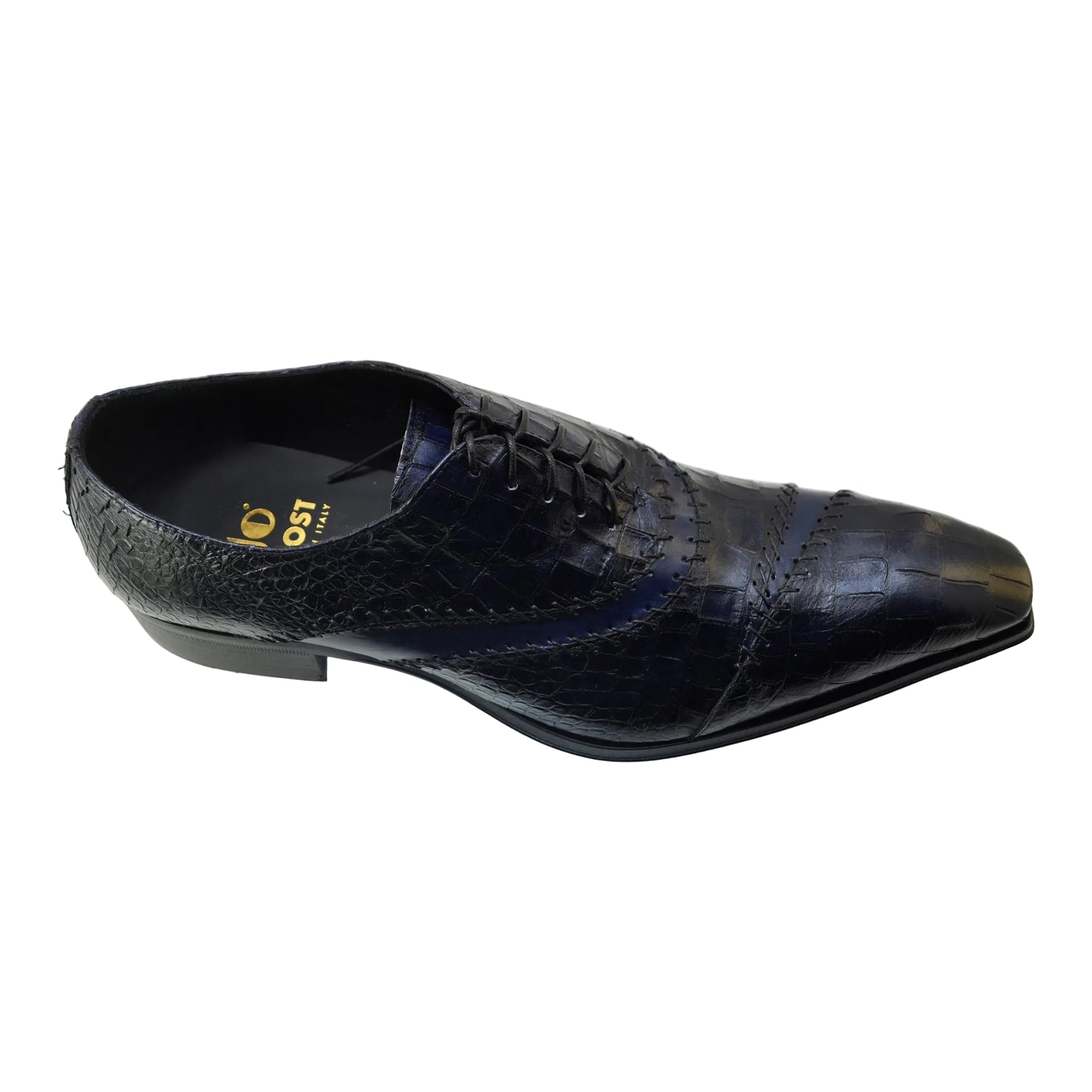 Men's Italian Shoes Jo Ghost 5712 Black Print Leather Crocodile Blue Leather Dress Lace up Shoes