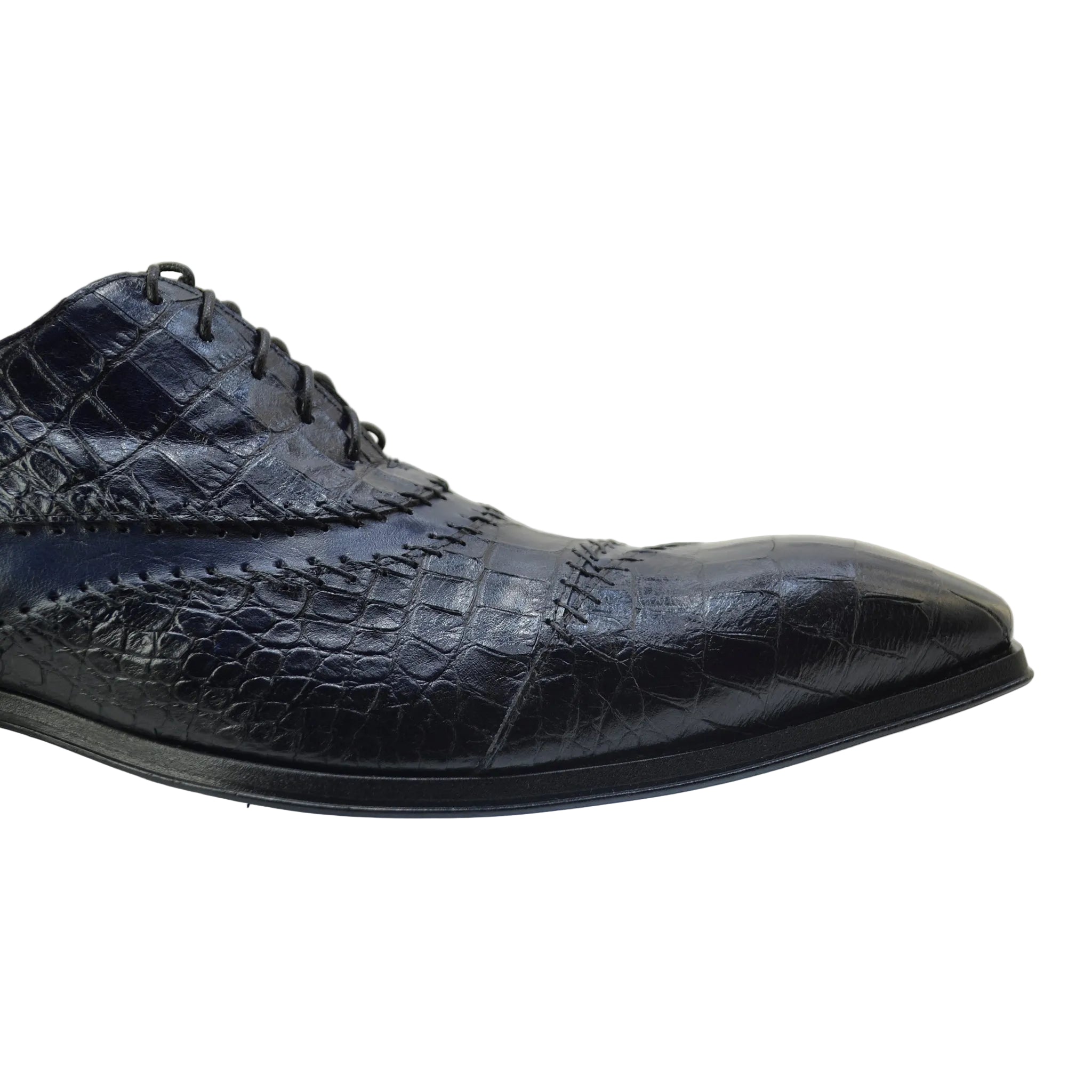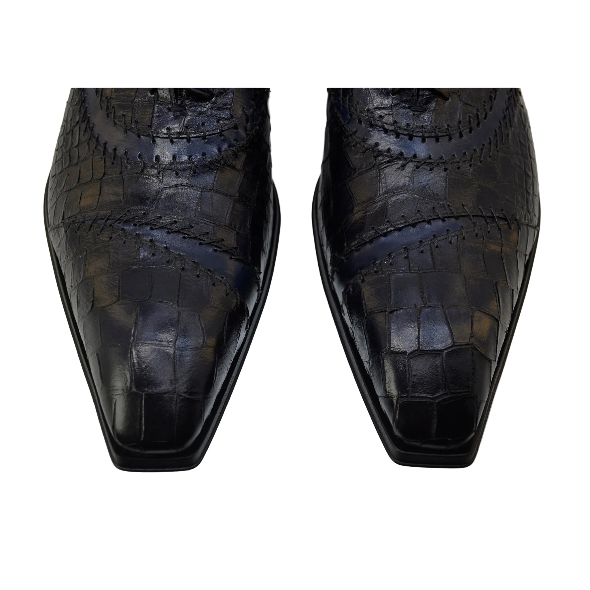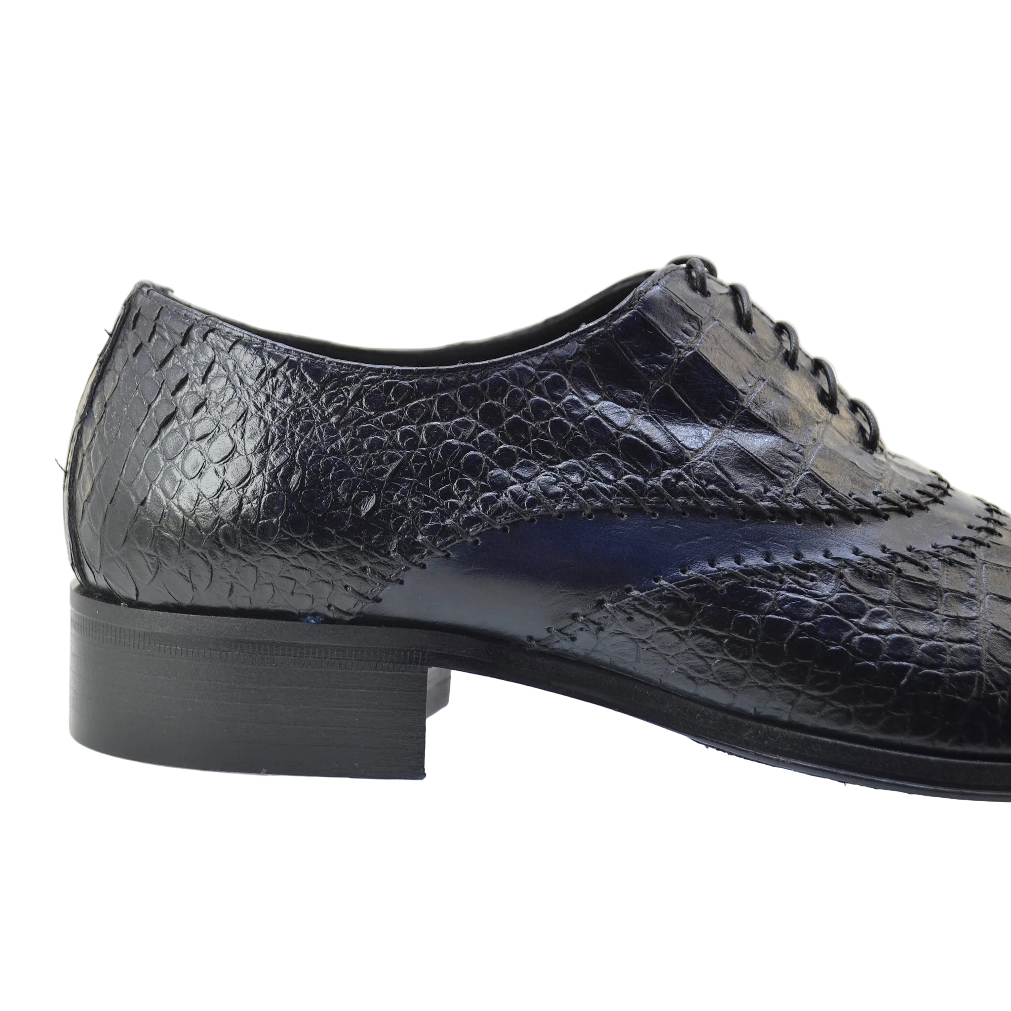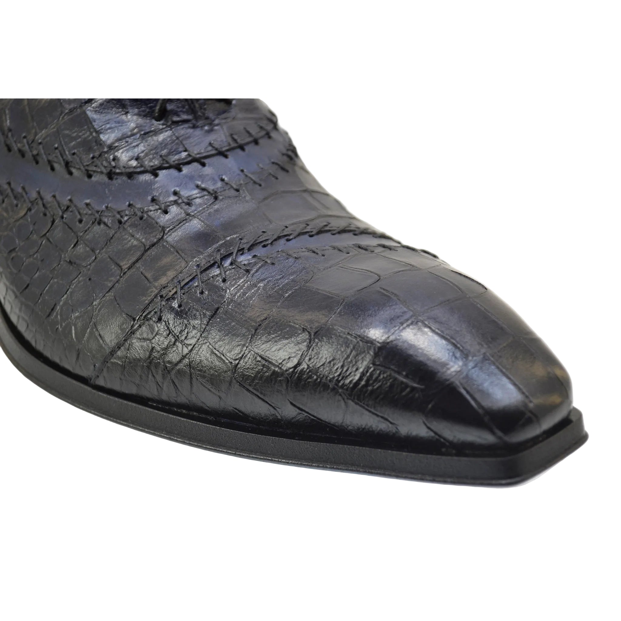 Men's Italian Shoes Jo Ghost 5712 Black Print Leather Crocodile Blue Leather Dress Lace up Shoes