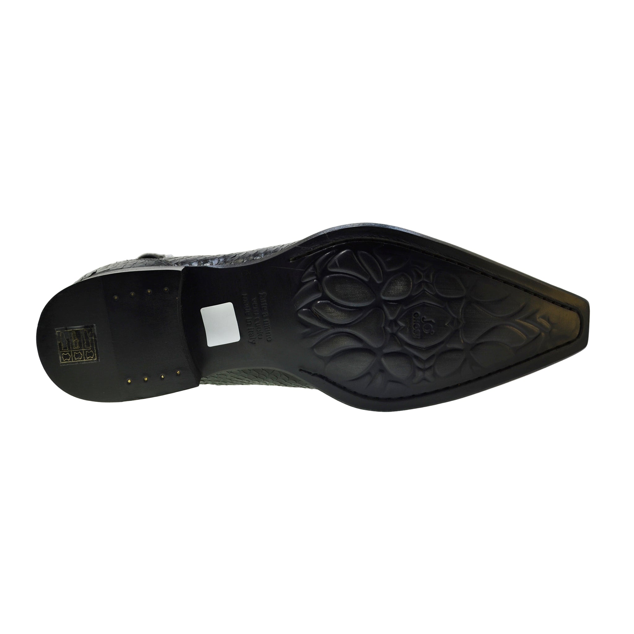 The Jo Ghost 3206P Green Python Printed Leather Dress Ankle Boots, this elegant ankle boot features a green python-printed leather upper in deep black tones.