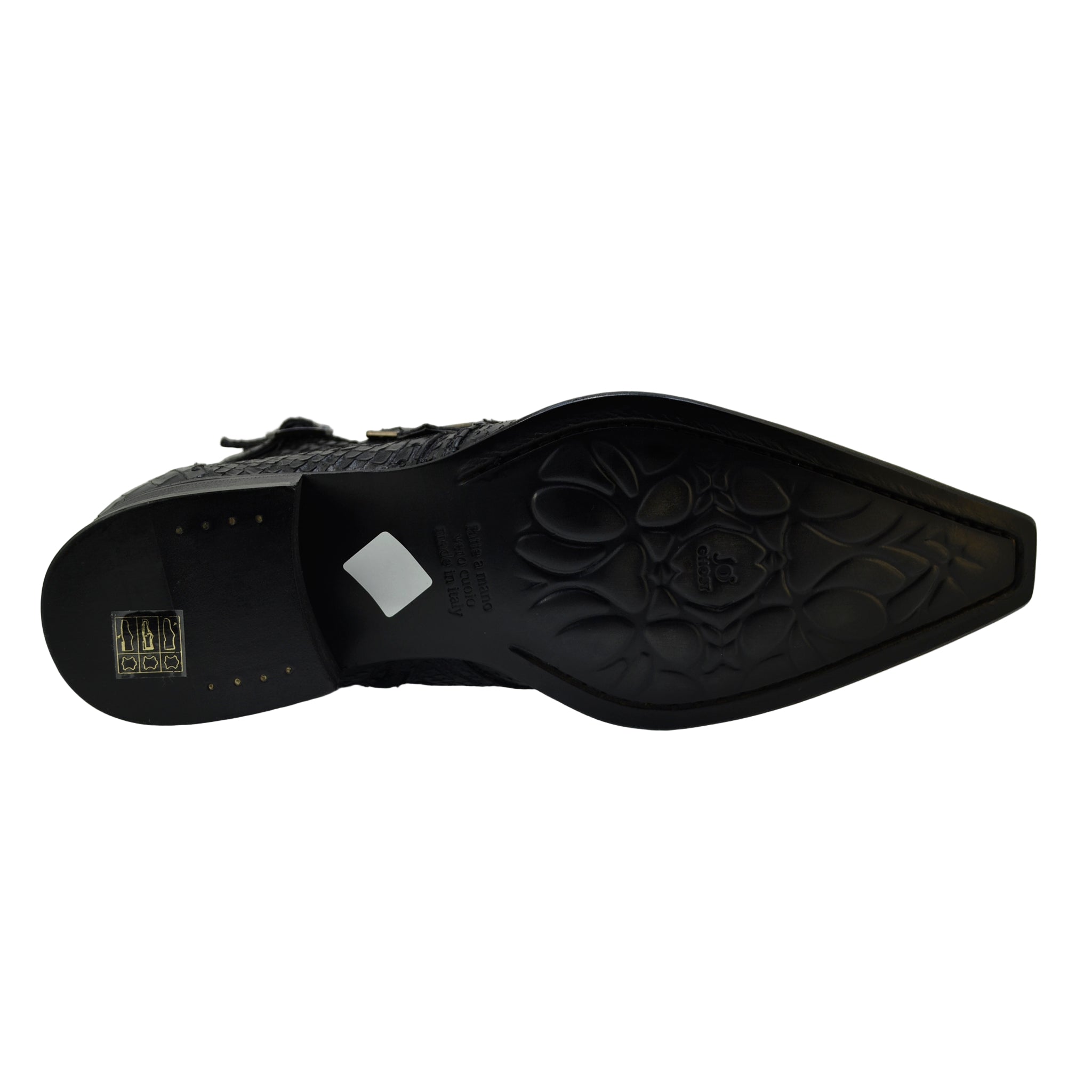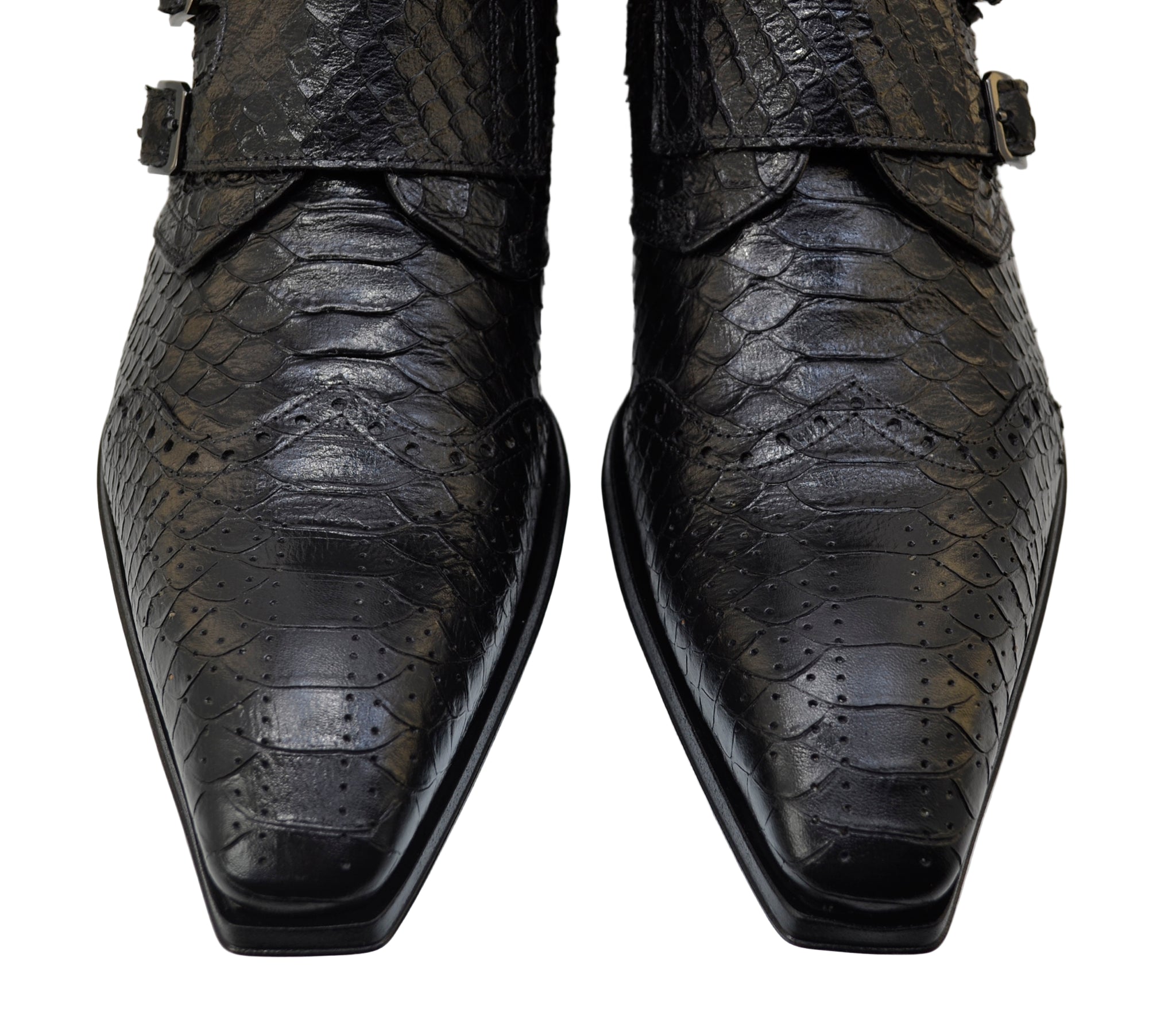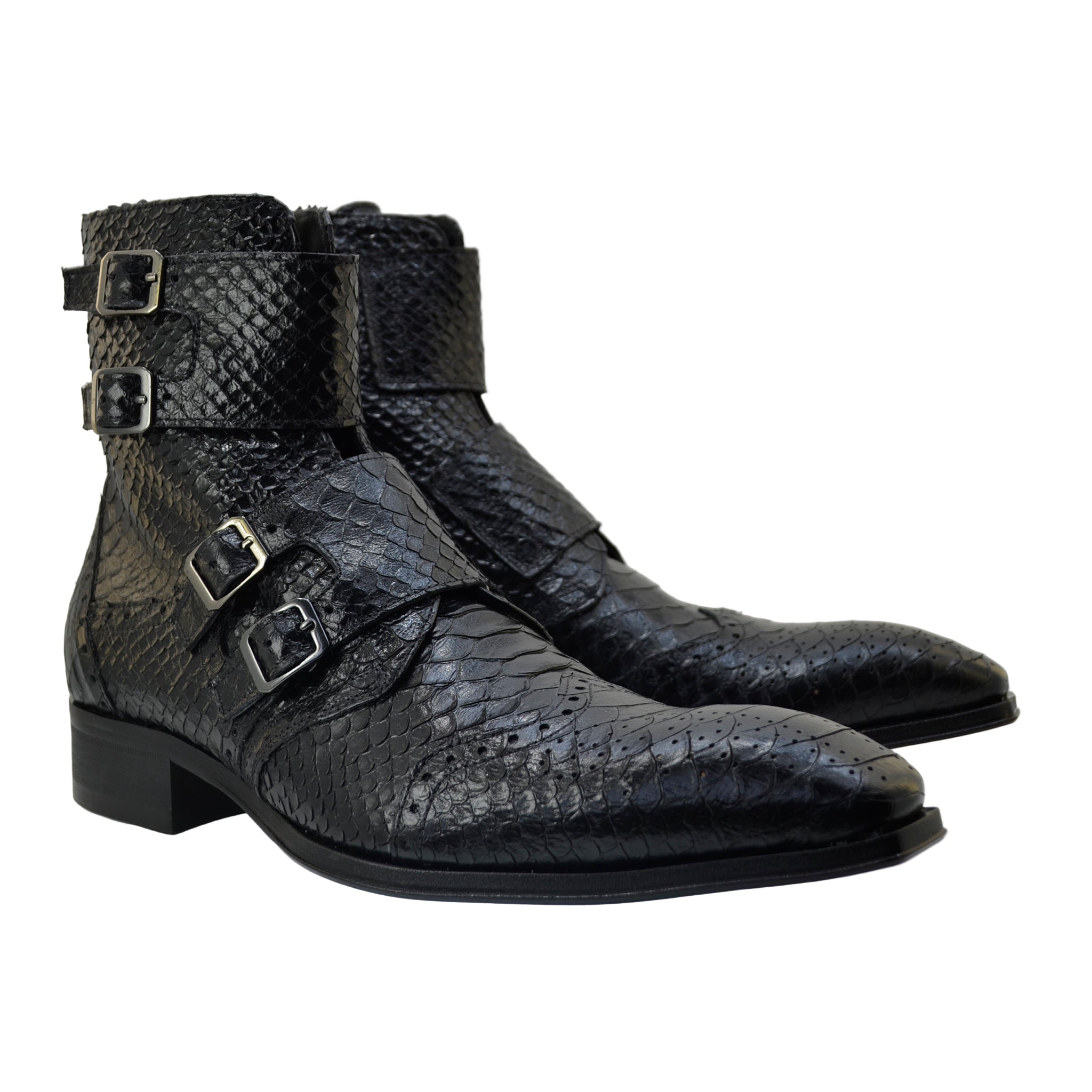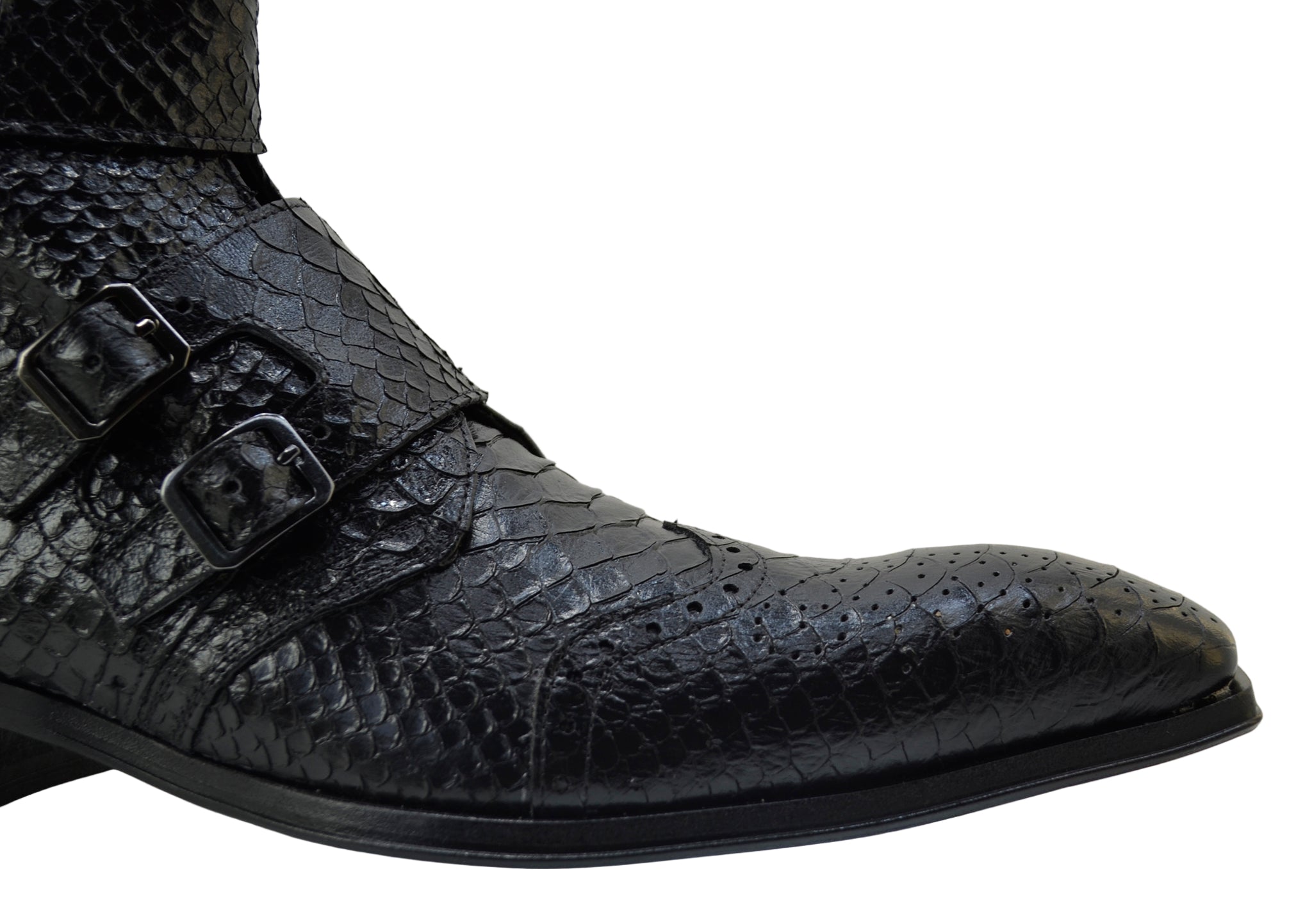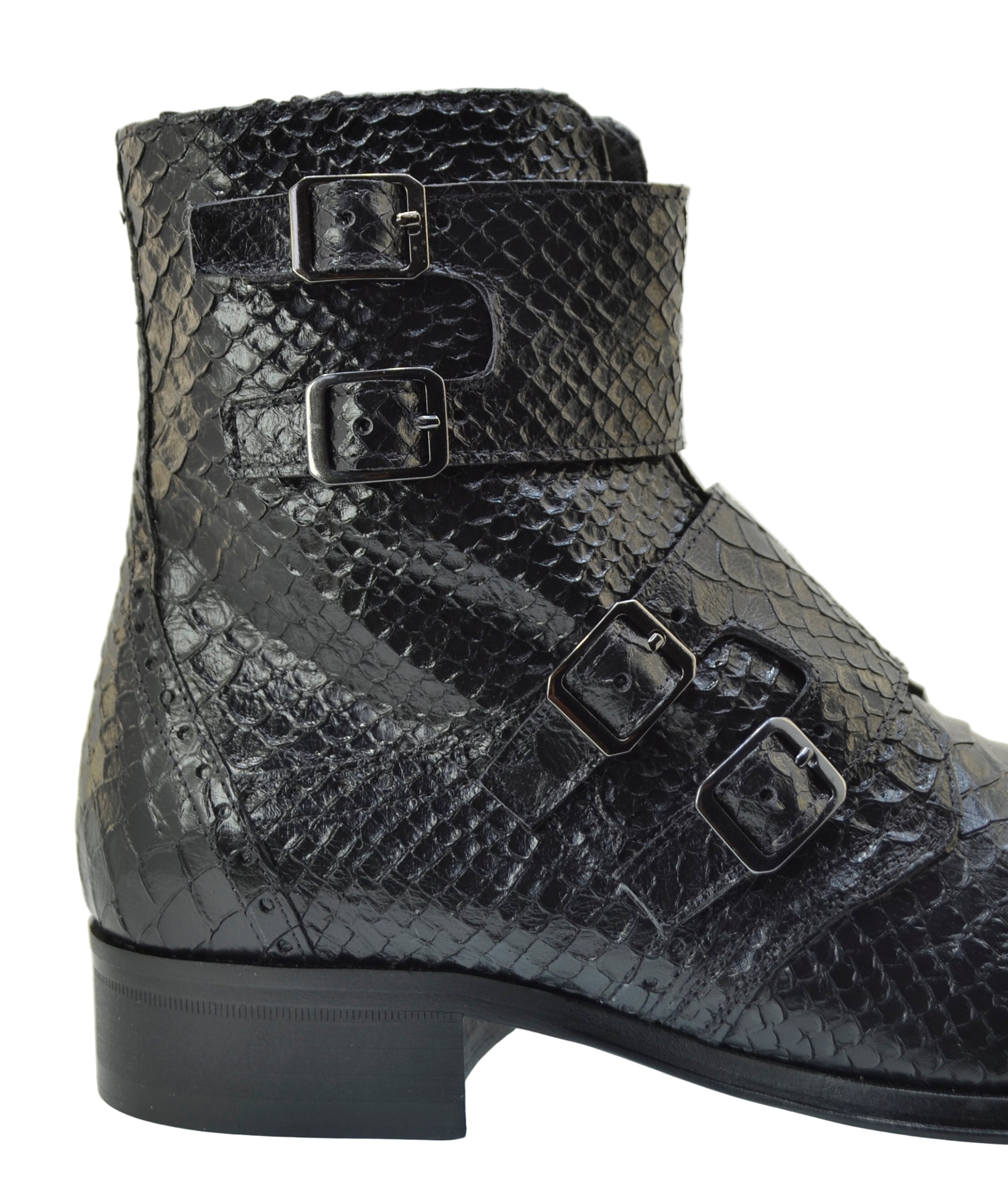 Men's Italian Boots Jo Ghost 5611 Black Print Python Leather Ankle Buckle Boots